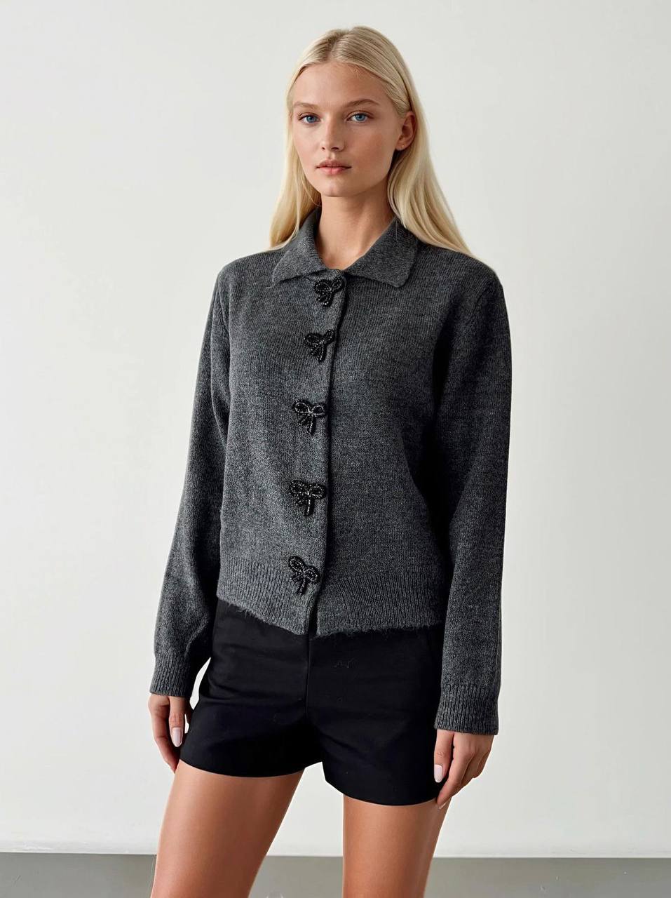Home Cardigans Grey knit cardigan with bow shaped buttons