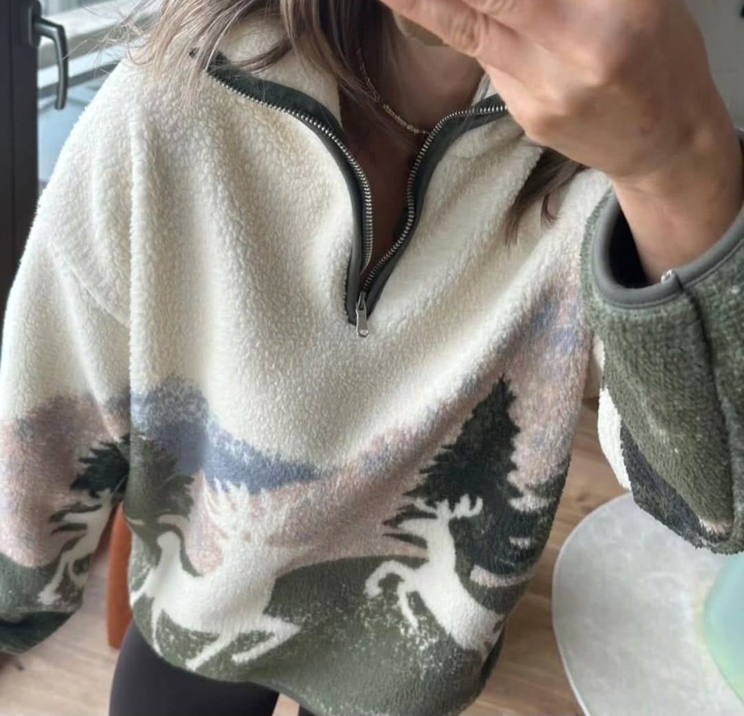 Half Zip Fleece Pullover With Forest Print - Image 1