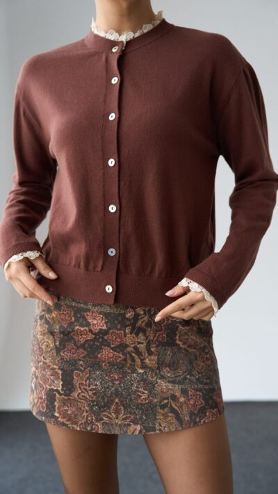 Pink Ribbed Button-Up Knit Cardigan