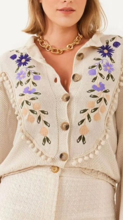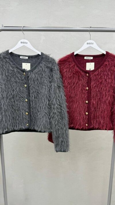 Black Fuzzy Cardigan With Floral Buttons
